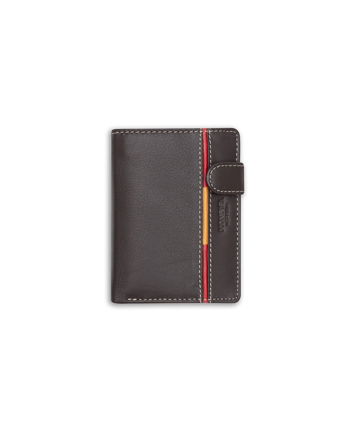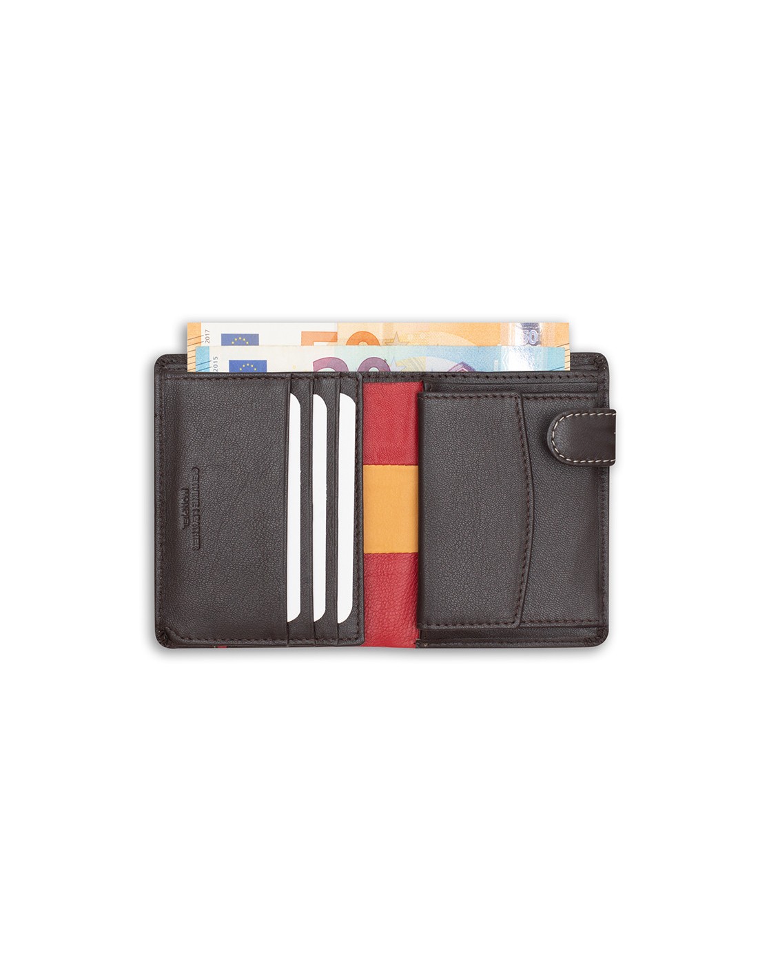 Cartera de hombre piel.Nuestro nuevo modelo de cartera de hombre cuenta con capacidad para 9-12 tarjetas, doble billetero y monedero con cierre.Este diseño de billetero se caracteriza por su diseño de la bandera en el interior. En el exterior cuenta con una raya lateral con los colores de la bandera y con broche para máxima seguridad.
