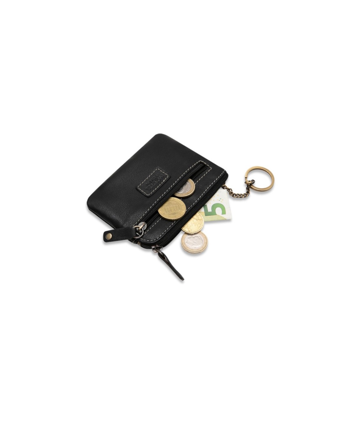 Monedero de piel de tamaño pequeño con gran capacidad. Monedero pequeño elaborado en piel 100% natural con cremallera en la zona delantera. Dispone de dos argolla interior para enganchar tus llaves. Capacidad para 5-6 tarjetas, billetes doblados, monedas y llaves!