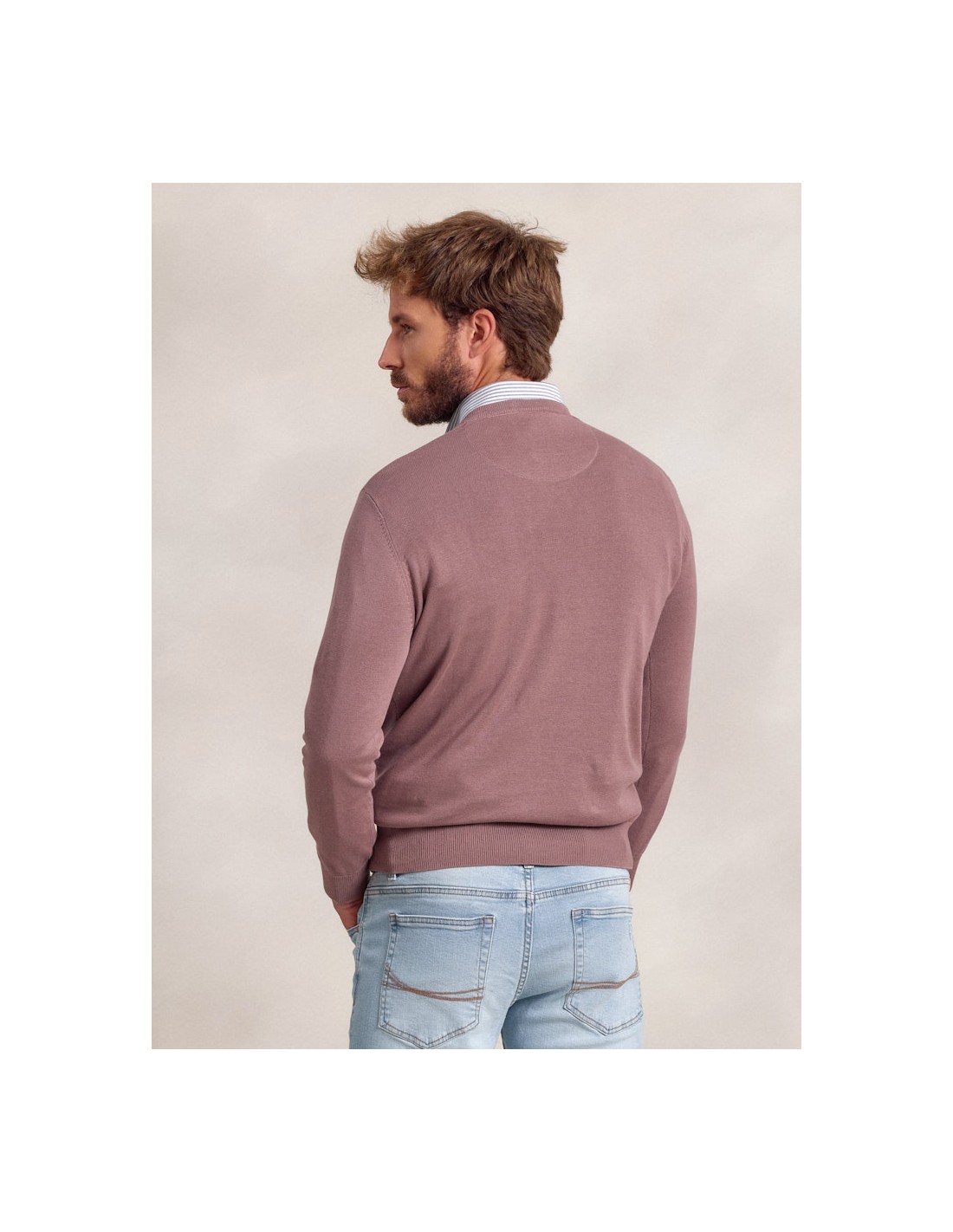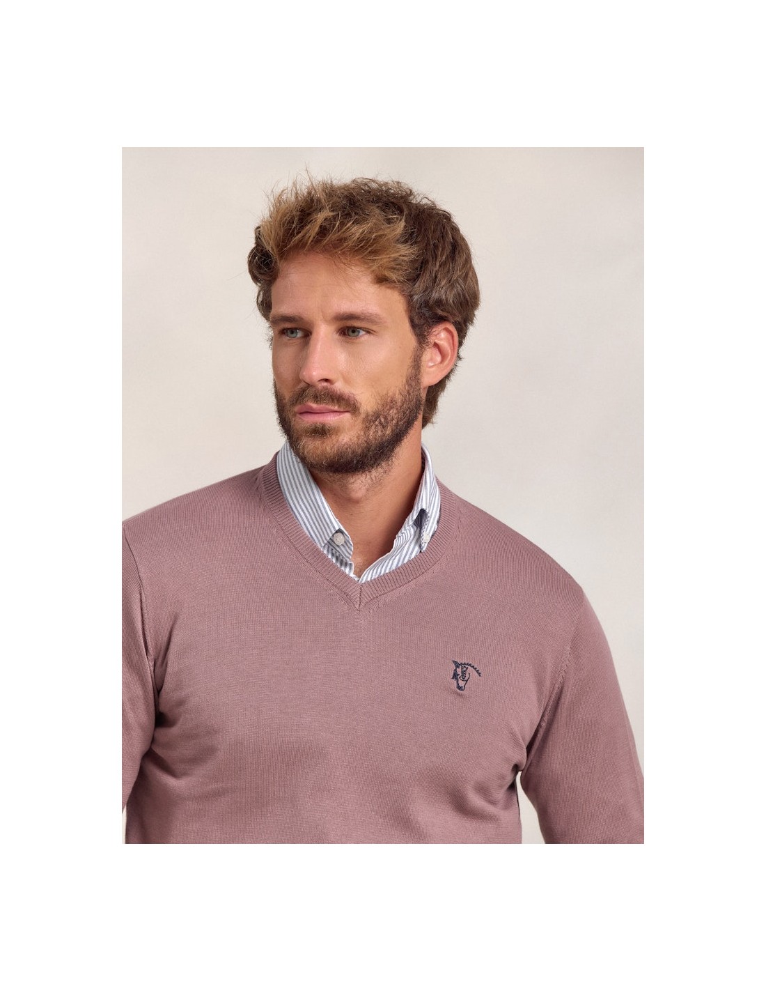 Jersey de pico en color lavanda confeccionado en tejido 100% algodón. Corte recto, cuello pico, manga larga. Bordado de nuestro caballo en el pecho.